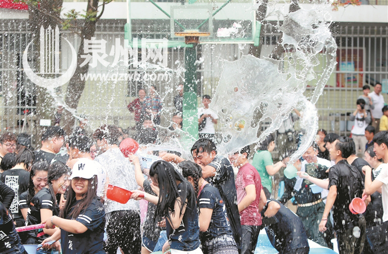 4月17日讯 据东南早报报道昨日上午,华侨大学举办一年一度的泼水节,众多学生拿着大水瓢,在篮球场上互相泼水。人群中水花飞溅,欢笑连连,参加的学生互相用飞溅的水花表达祝福,为来自老挝、泰国、缅甸、柬埔寨等国的境外生庆祝佛历新年。泼水节也吸引了众多同学和摄影爱好者,还有两架无人机前来航拍助兴。