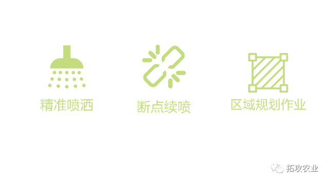 当飞控系统检测到低压警报、药量低警报、或者一键返航的信号后,T1-A将自动关闭水泵,并记下当前坐标点为续喷点。