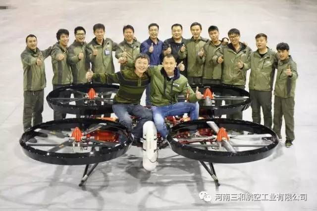 “祥云320”是我公司自主研发的世界上首架油动四旋翼载人无人机,其颠覆性超越常规的设计获得了国家发明专利。“祥云320”从根本上解决了目前四旋翼飞行器采用电动驱动,航时短载荷小,无法实现载人应用的技术瓶颈,我公司研发生产的大载荷长航时“祥云320”,在岛礁投送、应急救援、医疗救护、抢险救灾中发挥重要作用,同时也可应用在战地救护、物资投送等重要军事领域。