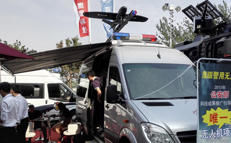 北京警用装备展中各式各样的无人机大放异彩、用途五花八门。警用装备的企业自主研制了无人机、还有一些企业则与传统无人机企业合作。将其它企业的无人机作为飞行平台融入到自己的系统中。在室外的车辆展示区中亦有许多特种车辆配备了无人机,形成了空地一体的警用系统。