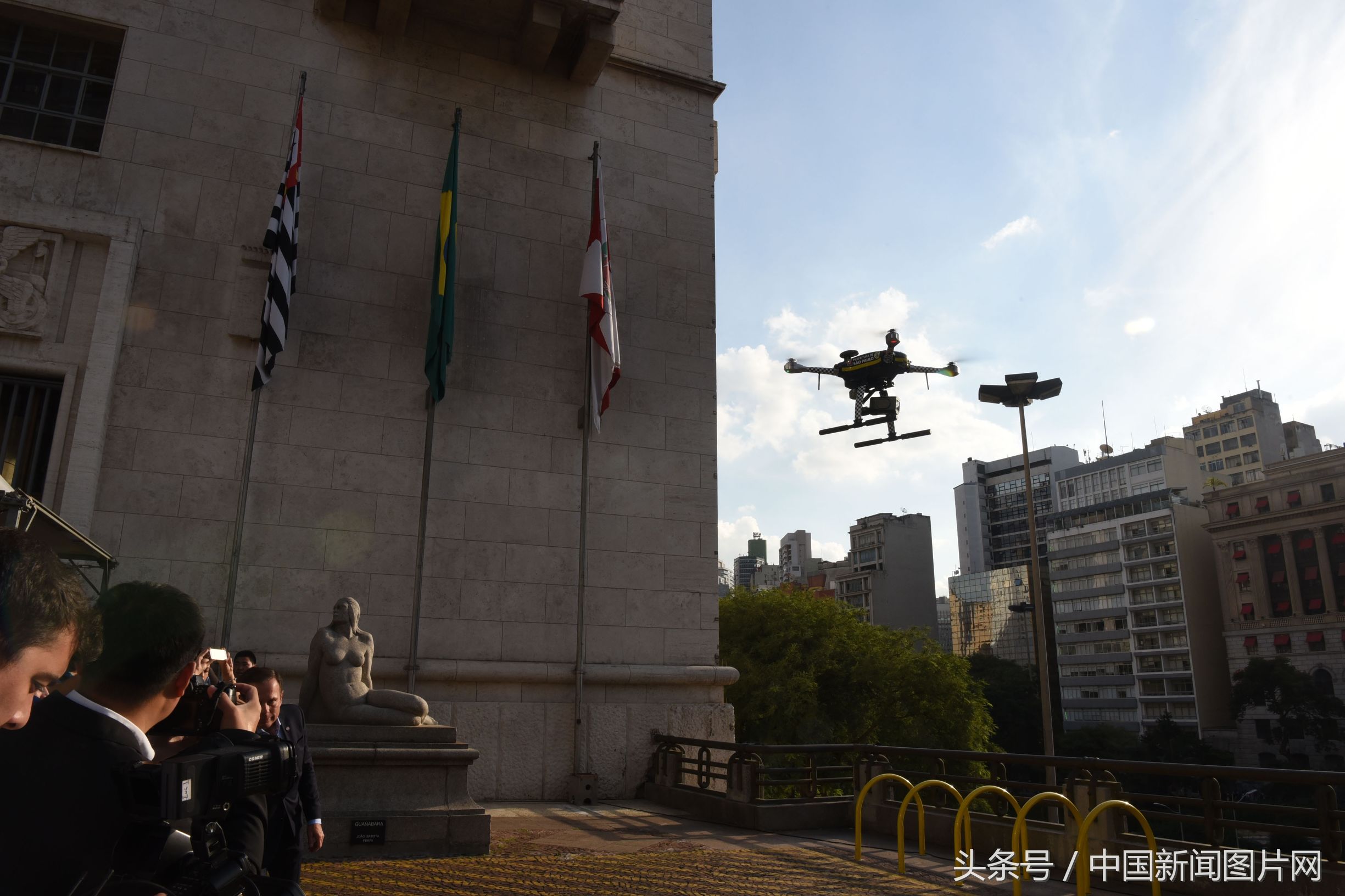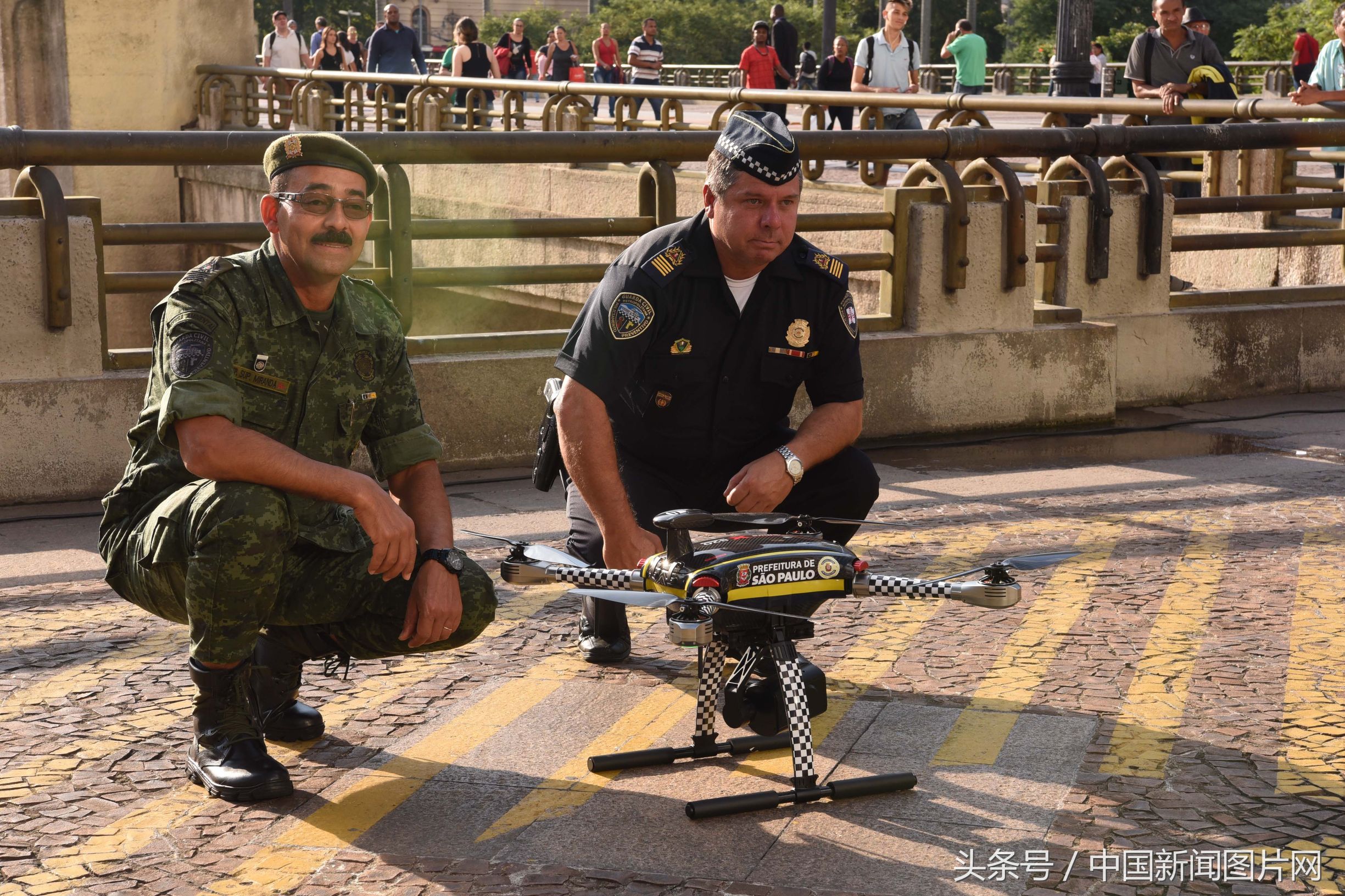 当地时间4月24日下午,巴西圣保罗市政府在市政厅举行新闻发布会,圣保罗市长若奥·多利亚宣布将引进中国大华高端无人机以及车载、便携式移动监控系统。这是中国高端品牌无人机首次进入巴西政府行业市场,可广泛应用于应急指挥、警用安防、森林防火、电力巡检、铁路巡线、环境监测等领域。图为圣保罗军警在中国大华无人机前留影。