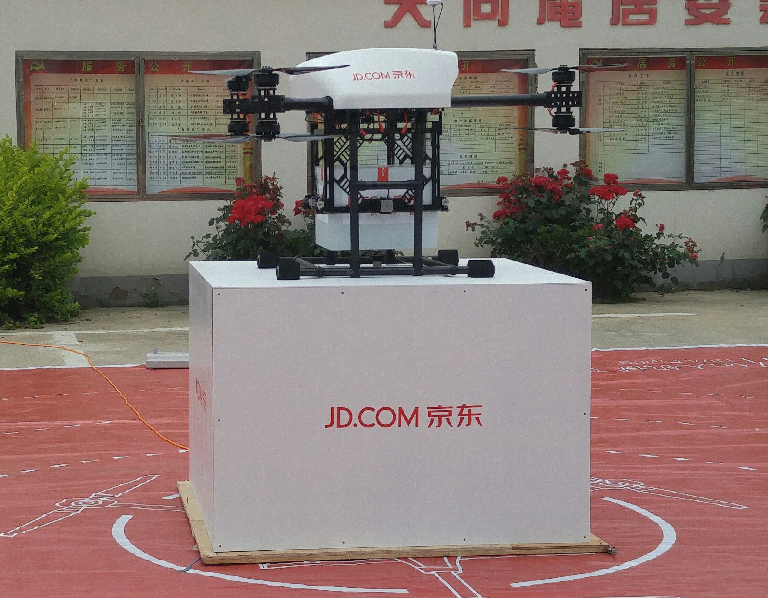 (京东无人机正在装货)