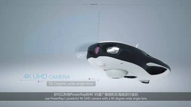 PowerRay小海鳐主打水下摄影,配备了超高清广角相机,可以实时1080P传输预览水下的图像与视频,并支持4K 30帧视频录制与1200万像素5张图像连拍,能够通过遥控手柄、手机app、手机体感或VR体感四种模式进行操控,满足不同用户在不同场景下的不同需求。