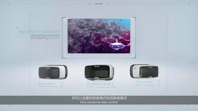 此外,通过发布会上的现场展示,用户还可以通过VR眼镜的重力感应控制PowerRay在水下的运动,通过变换头部姿势控制PowerRay实现左转、右转、上浮、下潜,互动体验效果极佳,仿佛置身虚拟游戏世界一般。