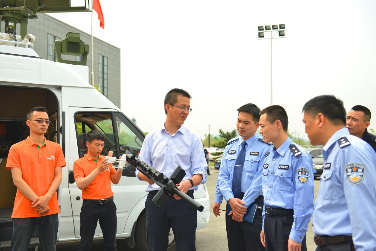 2017 年 4 月 26 日,受江苏省苏州市新区公安局邀请,上海资誉电子科技有限公司携其自主研发的“空降兵”反无人机安全管控系统赶赴该局,与苏州新区公安分局领导、装备科和特勤大队领导就当前面临的无人机威胁以及具体应对措施进行了具体讨论交流,并现场演示了“空降兵”系列产品的“察控一体”功能。