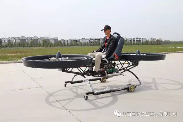 三和航空自主研发的“阿凡达”飞行摩托利用倾斜盘及三轴陀螺仪参与控制,很好的解决了飞行摩托的控制问题,采用进口航空发动机提供动力,单架次可以连续飞行2-3小时,有效解决了电动航时不足的问题,使飞行摩托真正达到实用级别,让人类飞行器历史得到跨越式发展。