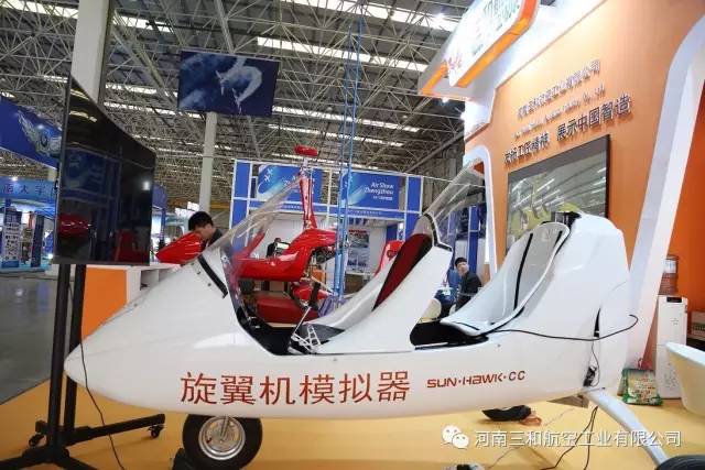 我公司在室内静态展位(A-103)设有旋翼机模拟体验器,室外静态展设有飞行训练器,大家可乘坐进行飞行体验。