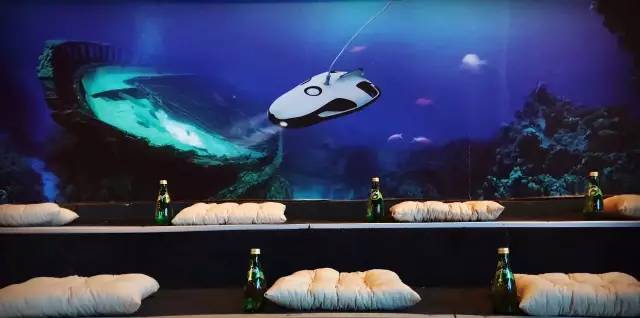 伴随着音乐声,小海鳐在水下平稳慢速的进行着前进后退、上浮下潜、转弯等姿态展示,我们的操作人员实时记录了水下拍摄的高清画面。