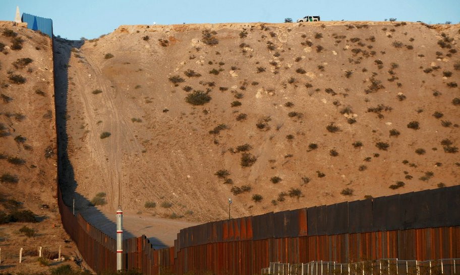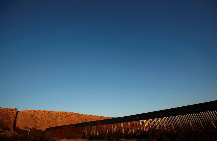 墨西哥华雷斯城郊区,这是美国墨西哥边境墙的其中一段。