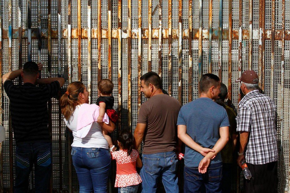 墨西哥北部城市提华纳,人们和他们移居美国的亲戚隔着分割美墨的篱笆上说话。
