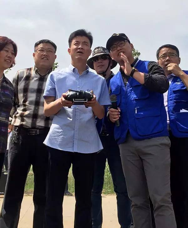 看到无人机的精彩作业,领导们拿起遥控器,亲自体验当飞手。