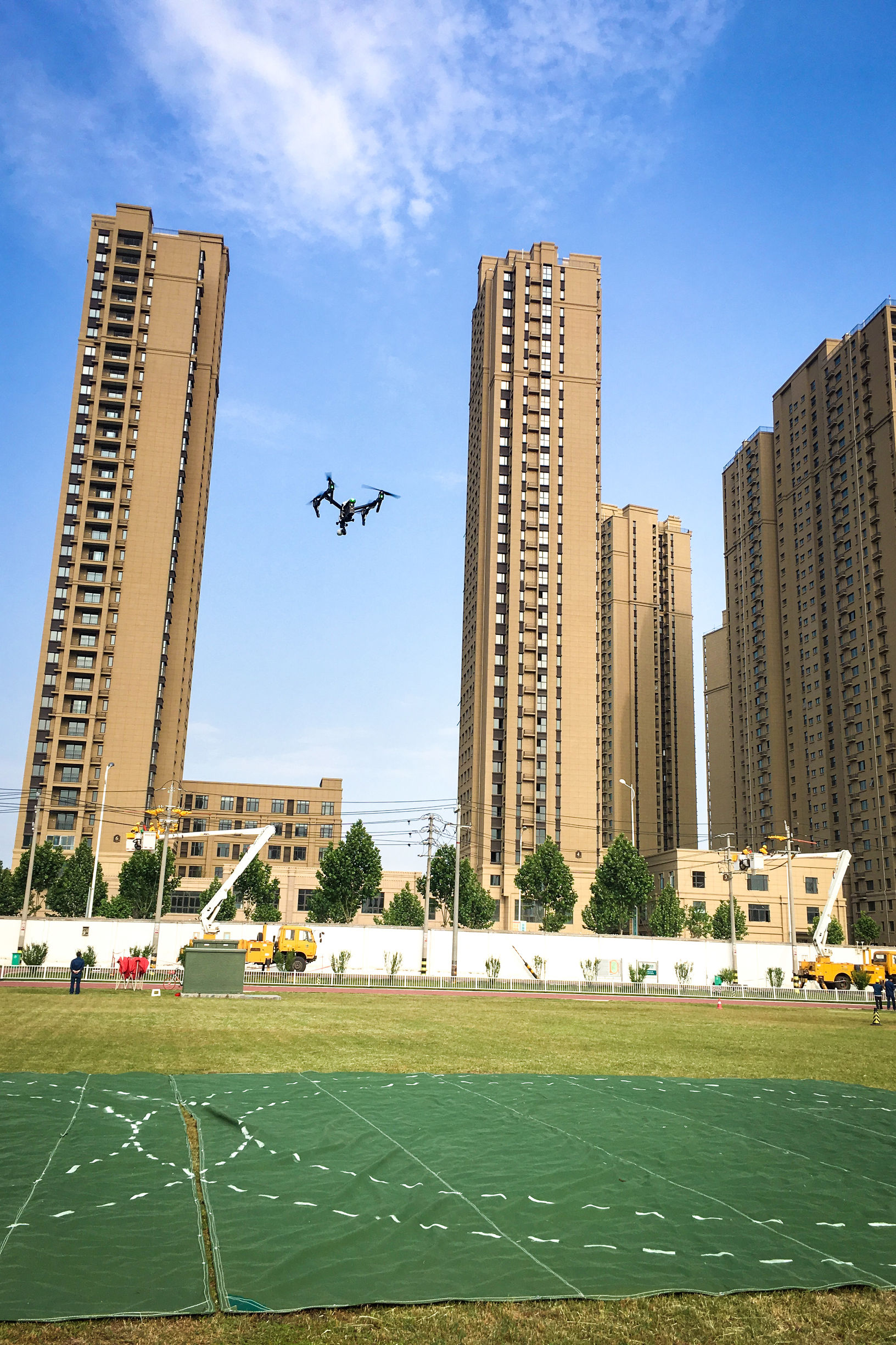 5月8日,河南郑州,蓝天白云,阳光明媚,小编一朋友带了一架大疆悟航拍无人机在操场上试飞,提升一下飞行技术。