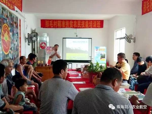 为切实提升雷州市那毛村农民对农用无人机科普知识,确保其能脱贫解决就业问题。4月17日,由省农业厅牵线搭桥,珠海羽人在雷州市乌石镇那毛种养农民专业合作社的职业农民培训学校,进行了一场知识培训班讲座。这次培训课的主持是由省农业厅精准扶贫驻那毛村广东农机推广总站的副站长彭彬,培训期间并为去年种植番薯增收脱贫的贫困户颁奖。