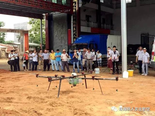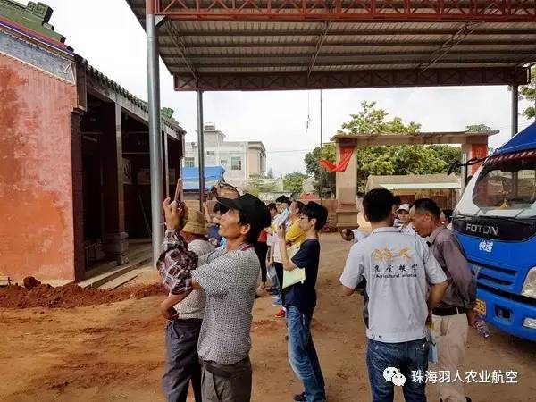 在交谈了解过程中,珠海羽人“虫口夺粮”飞防服务队现场演示了我们公司主打机型“谷上飞”3WDM8-20L大载荷多功能农用无人机。可使用一个飞行平台,快速更换播散、喷洒、喷粉,实现三种不同的功能,利用智能地面工作站自主飞行,规划航线,精准喷洒植物作业。在飞控手操控下,农用无人机模拟喷洒动作,精彩的表演让在场的领导和围观的村民都大开眼界,边看边“啧啧”称奇,不一会儿,聚集了众多村民又多了起来!看到精彩处,纷纷拿出手机抢抓精彩瞬间!