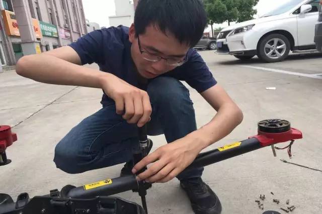 因为航线规划的失误,飞机不慎迫降进了藕塘,我当时特别着急,于是找来了陈志鹏。我眼看着他熟练地拆开机身,清除进入机身的水,检查飞机部件,更换电机,再将机身复原检查。如果没有他的帮助,这台无人机很可能会不能用了。