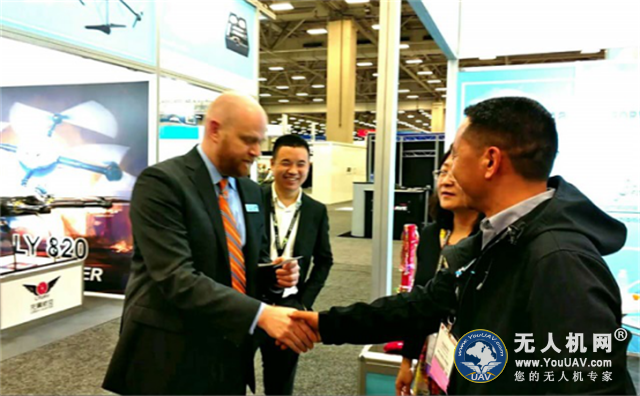 (AUVSI)的总监Mike与无人机网(www.youuav.com)胡总握手问好