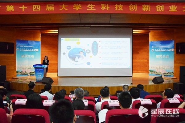 5月14日上午,长沙市第十四届大学生科技创新创业大赛决赛在长沙举行。来自国防科技大学、中南大学、湖南中医药大学等18所大学的41支参赛队伍进行激烈角逐,从项目的科学性、创新性、实用性出发,突出可预见的经济效益和社会效益。