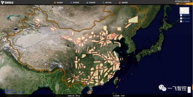 云平台织造“天网”能时刻监管无人机。在农作物植保的过程用户、植保队和飞手需要观看的无人机的作业安全和植保效率,无人机飞控系统可以通过4G网络模块持续向云平台服务发送无人机的作业信息,如高度、经纬度、飞速、作业面积等。云平台既可以监管到在线无人、离线无人机,任何签署了EfyUAVLinke协议的无人机都可以在云平台织造的一张天网上被监管到。