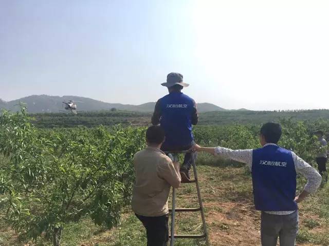 5月12日,汉和航空受邀参加了中国农业大学联合山东省临沂市蒙阴县农业局、农机局、植保站进行的桃树试药测试。汉和与当地植保站相关负责人,种植大户,乡政府代表现场研讨果树飞防施药。