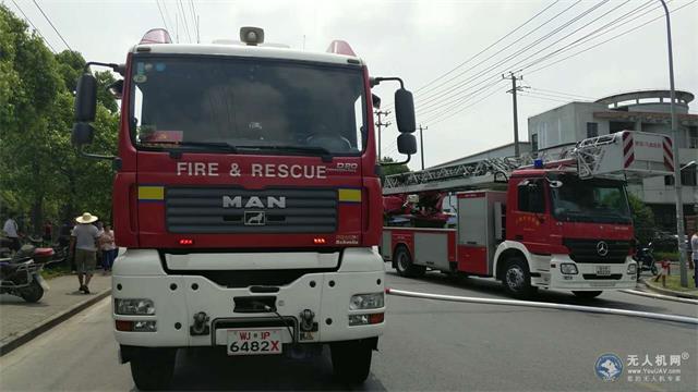 救援消防官兵车辆 消防官兵疏散出来的群众