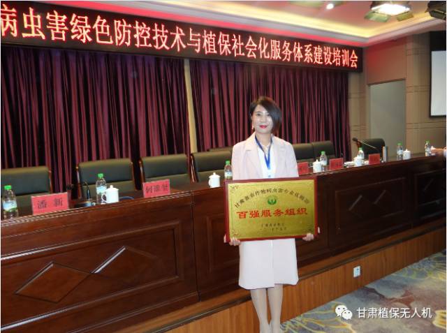 会议宣布成立了甘肃省植保社会化服务联盟,公布了甘肃省农作物病虫害防治“百强服务组织”名单并予以授牌,甘肃天翼航空科技有限公司作为全省唯一一家无人机企业获此殊荣,是领导对我公司工作的肯定,也是对我们的鼓励和鞭策。