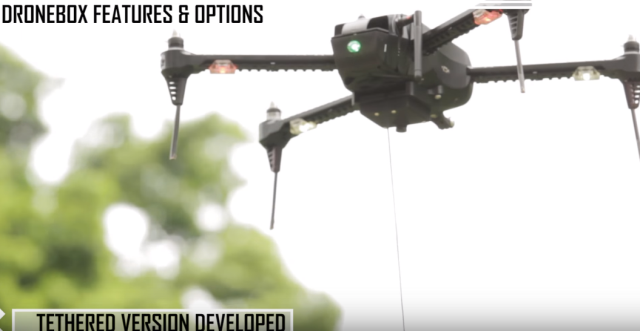 DRONEBOX和可以携带绳系留空的h3 dynamics无人机(优点是可以长时间在一定范围留空作业)(图片来自该公司视频)