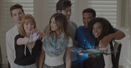 首先向我们飞来的是大疆刚发布的“晓”Spark四轴无人机,作为民用无人机龙头企业的最新产品,“晓”Spark被认为是大疆进军口袋无人机市场的敲门砖。该机刷新了大疆无人机的最小体积,拥有人脸识别开机,无遥控手势操纵,一键短片拍摄等功能。“晓”Spark最大的突破,即是将全新的人机交互引入无人机操控中,现在用户无需遥控器或移动设备即可开机、控制无人机飞行、拍摄和返航。