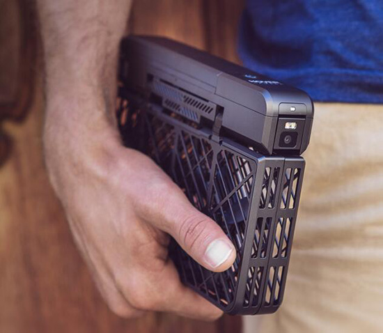 但与专业无人机相比,口袋无人机在避障方面十分弱势,在这一点上,大家都有不同的解决方法:为了拍摄时不会撞上用户,“晓”Spark在前方安装避障,但却无法避免撞到其他方向的障碍物导致炸机;小黑侠则直接将螺旋桨封闭起来,完全杜绝螺旋桨撞上障碍物的可能,同时降低最大飞行速度至8米每秒,保证其撞上障碍物也不会摔的很惨,直接报销;曼塔S6为了维持小巧的机身,将全向避障功能转移至外接模块上,虽然不知避障效果如何,但也好过完全没有避障功能的DOBBY。