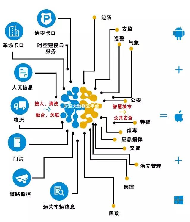 以公共安全实际业务需求和服务模式创新为导向,整合各类时空资源,以位置服务为核心,实现各信息系统原始数据高度整合,为用户提供一站式的大数据分析及应用服务,为信息检索、研判分析和科学决策提供全方位的支撑,为智慧公安、智慧交通、智慧国土、智慧安监、智慧疾控、智慧民政等智慧城市的建设提供更强大、更高效、更丰富的服务。