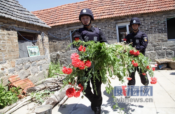 根据无人机的指示,特警迅速赶往指定区域,这是一户久无人居的农村平房,从破落的门板进入园中,零星的罂粟大多长在墙角或院子的砖缝间。随后,特警将罂粟全部拔掉,据统计共有90株。