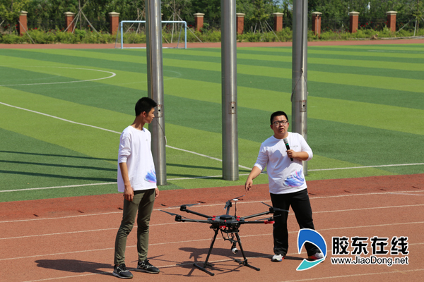 来自哈尔滨工业大学无人机创新实验室的李港、韩寒两位同学为师生们展示了大疆经纬m600无人机。在无人机飞行过程中,他们为同学们介绍了无人机的相关知识及多轴飞行器的飞行原理和实际应用。“m600无人机平台是大疆公司设计的工业级无人机平台,我们搭载了z3相机,另外这个可以搭载单反相机,红外相机等专业设备,进行专业摄影,电路巡检,农业植保等工作。”李港同学介绍。