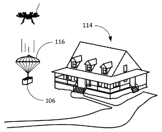 5月30日亚马逊获得了某配送专利,该专利为通过在无人机或其他飞行器中内置降落伞,从而使得包裹在使用无人机或飞行器进行空中投递时能够安全着陆。