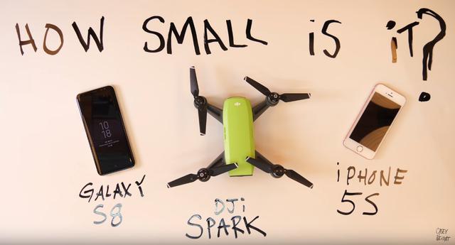 大疆Spark和三星S8、iPhone5s的大小比较