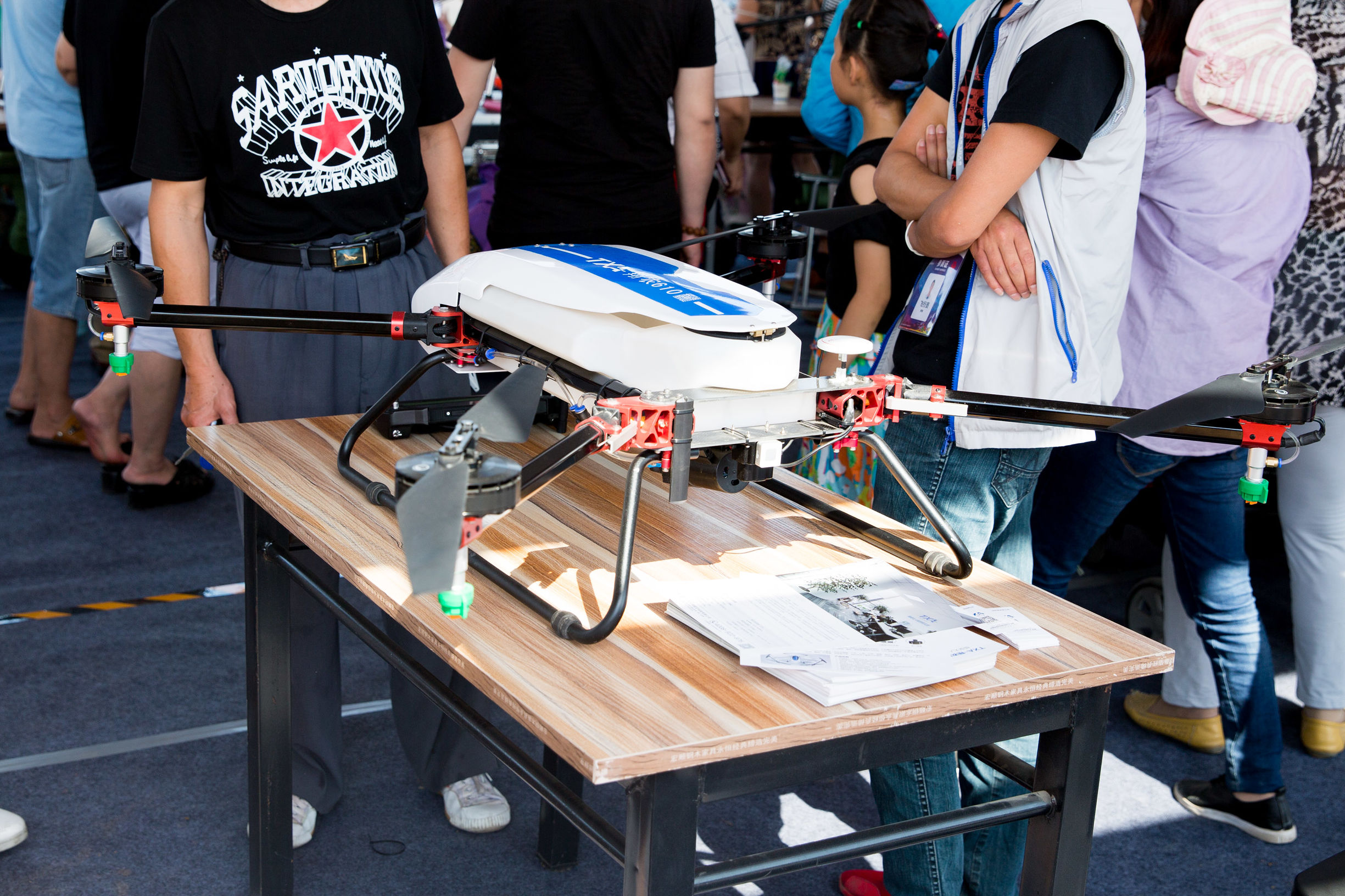 前些日,在某机场举办了一场无人机展览,多家无人机厂商开设展台,地面上摆满了各式各样的无人机,有四轴的,有八轴的,有直升机、也有喷气式战斗机,参观的群众络绎不绝,整个展会犹如菜市场。图为一架四轴无人机。