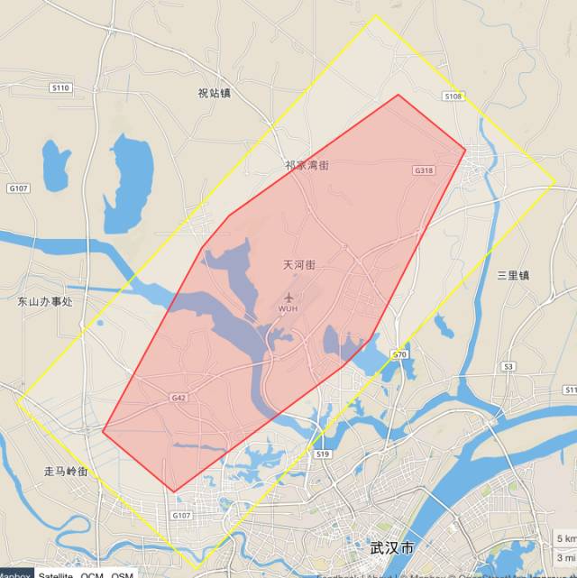 示意图2:旧版武汉天河机场禁飞区、限飞区范围