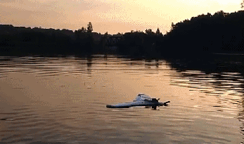 这种固定翼无人机叫做SUWAVE(Sherbrooke University Water-Air Vehicle),着陆时直接坠落在湖面上,停航时漂浮在湖面并通过太阳能板充电,然后凭借其特殊设计的铰链螺旋桨从湖面再次起飞。