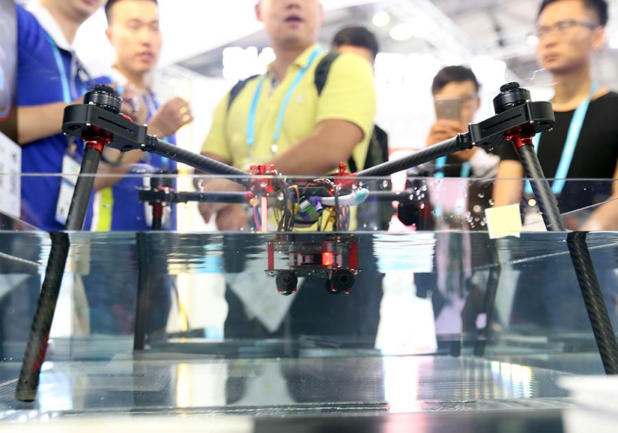 水空两栖无人机——主机即便浸泡在水里,也丝毫不影响起飞。