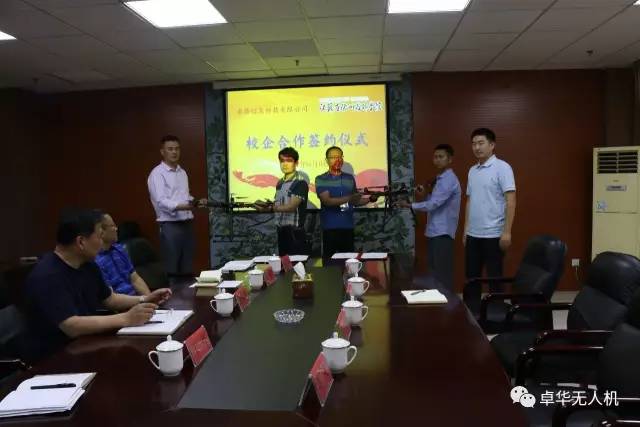 胡恒庆副院长对我公司合作开展无人机培训工作表示欢迎,并从专业建设、师资力量、学生就业、校企合作等方面介绍了徐州技师学院的概况。我公司总经理王淼霆介绍了我公司的基本情况与无人机的应用领域。随后,胡恒庆副院长与王淼霆总经理签订了校企合作协议,王总经理向建筑工程学院授"徐州技师无人机实训基地"牌,并赠与徐州技师学院两台无人机设备用于教学实训。