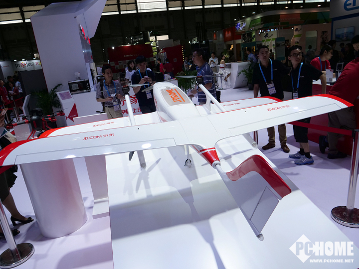 在京东展台我也看到了三款无人机产品JDRONE,有旋翼产品、也有固定翼和旋翼结合的产品,不过这些无人机并不是京东商城贩卖的商品,而是京东在巡检与物流上的重要组成部分,目的是解决偏远地区的物流问题,打造低空无人机通用航空物流网络,不仅可以提升配送速度,也可以降低配送成本,为世界物流行业的智慧化进程贡献力量。