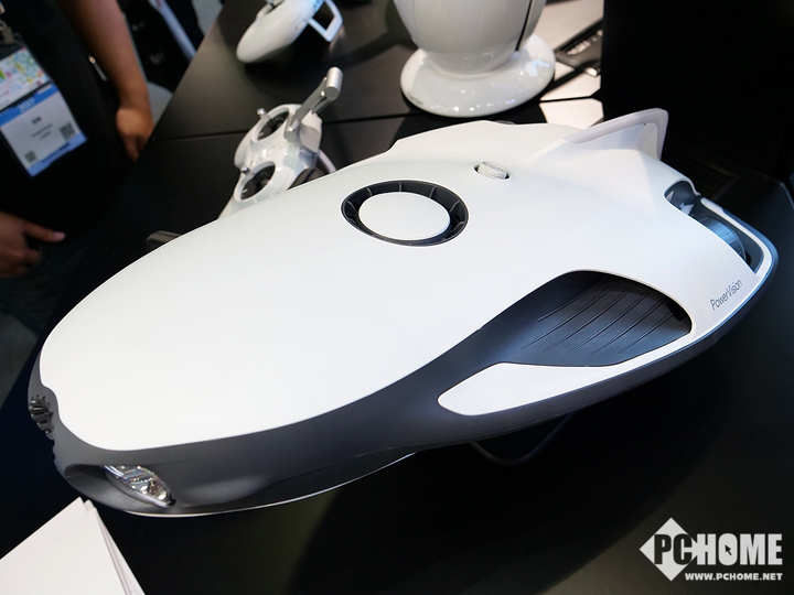 PowerVision展台还有一款特殊的无人机,PowerRay小海鳐,这款无人机没有旋翼,是一款水下无人机,确切的说应该是无人潜水器,主要用来探测鱼情、水温、水深和地形信息。PowerRay搭载了智能寻鱼器,寻鱼器还可以单独使用,实现寻鱼+诱鱼两大功能。另外通过沉浸式VR眼镜,我们可以直接观察水底情况,进行完全的可视化操作。
