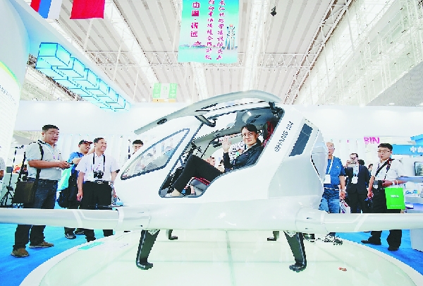 飞机开进展馆,注定身份不凡。在广东省展区内,一台还没有正式发售的载人无人机被围得水泄不通。这台184载人无人机由广州亿航智能技术有限公司展出,该公司行业销售总监罗晓婷告诉记者,这是他们首次亮相哈尔滨,这台无人机只有一个座位,在迪拜被用于在空中短途运送旅客,被称为空中“TAXI”,预售价为30万元。她告诉记者,这是一家全球领先的智能飞行器科技公司,以“让人类像鸟儿一样自由飞翔”为使命,除载人无人机外,还展出了不用遥控器操作的无人机,只需和手机连接,通过体感便可操作,此外还有VR眼镜和行业无人机的展出。每一台无人机无不展现“智能”和“智造”。
