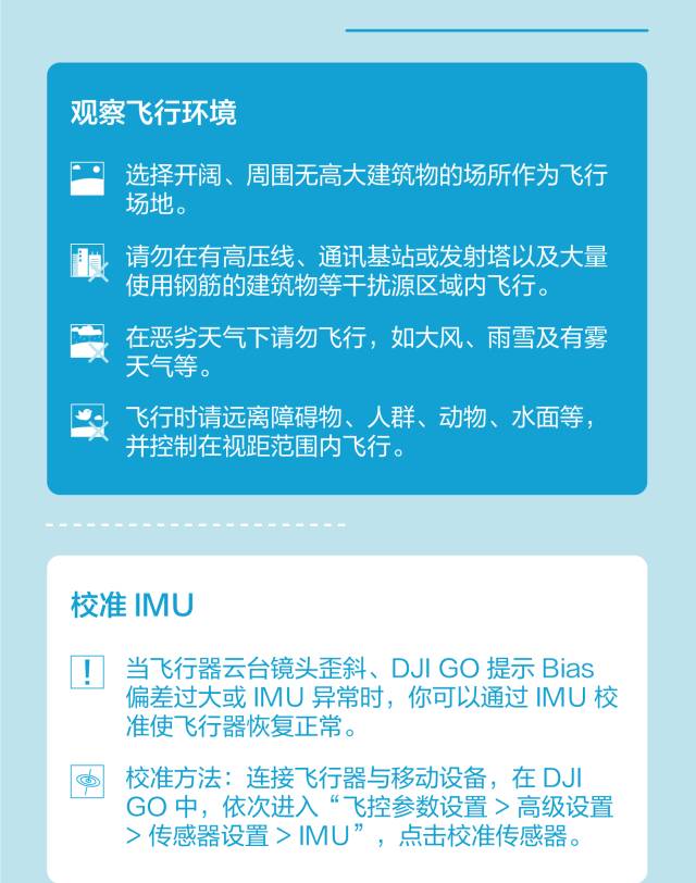 了解飞行区域限制,在起飞前完成自检过程,安全飞行是我们能够合理运用无人机从事各种活动的前提,也是每一个无人机飞手必须具备的基本素养。