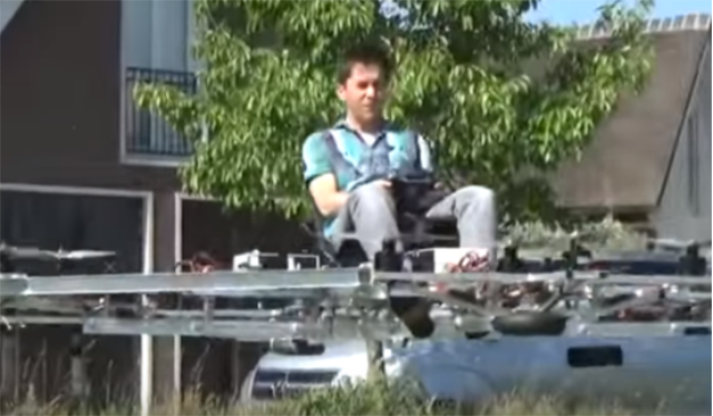本次试验虽然以失败告终,但是他们已经跨出了很多步,成功的飞起来了。相信他们可以再下一次的试验中,成功的完成载人正常飞行。不过目前来说,国外是有一位牛人制作的载人无人机能够载人飞越一个足球场、一片湖泊。接下来就来看看这位牛人的神作吧!