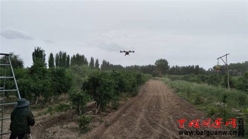 6月底到7月初,正是红枣树防治红蜘蛛的关键时期,6月23日,阿克苏地区人社局驻温宿县古勒阿瓦提乡阿克吾斯塘村工作队出资1800元,邀请来了地区无人机喷药专业团队,为村民的枣树喷洒农药,机器的轰鸣声吸引了不少村民驻足观看。