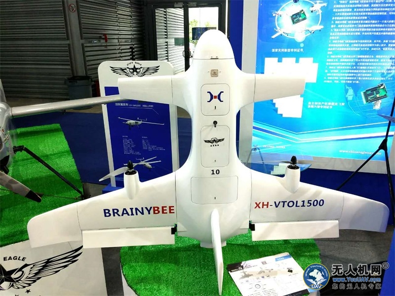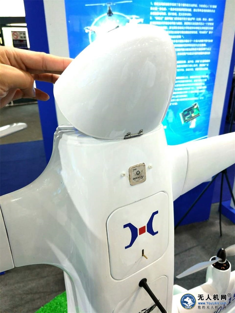 翔鸿科技在展会上所展出的这一款无人机是其最新推出的一款创新型垂直起降固定翼无人机,同时具备垂直起降和高速巡航的能力,该机型不需要跑道和起降空域,这种优势保证它能在山区、丘陵、丛林等复杂地形和建筑物密集区域顺利作业。