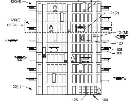 亚马逊在专利中说,无人机塔的规模巨大,会优先在郊区建造,但无人机塔是高层建筑,单个塔就能容纳无人机群带来的货物吞吐,即使在人口密集的市中心建造也是可行的。