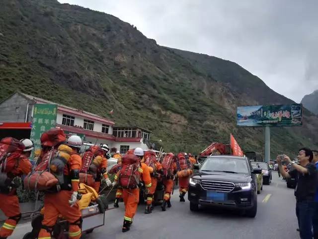 道路堵塞后徒步进入灾区的消防队搜救战士们,感动我们的是他们一心为民的决心和坚韧不拔的毅力!