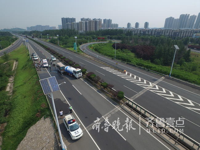 这是模拟演练。6月27日上午,济南市公安局交警支队、济南市公安局高速交警支队联合齐鲁交通发展集团有限公司济南分公司、济南市公路局高速公路管理处、济南市公安局消防支队、济南市急救中心等单位,在绕城高速公路东线组织开展了道路交通事故现场应急处置演练。此次演练共出动车辆18台次,参加演练人员100多人。