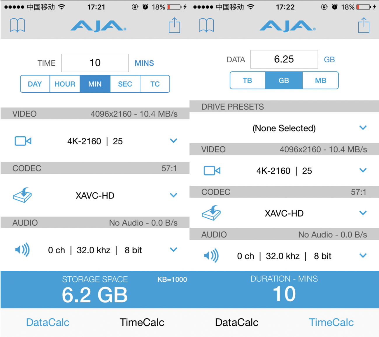 AJA DataCalc是一款专注于视频体积计算的app。有了这款app,飞友们对于出门要带多大内存的储存卡以及一个储存卡可以拍多久的视频这种问题就了如指掌了。