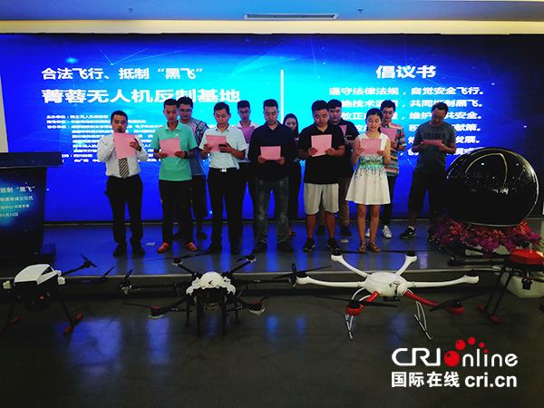 无人机飞行爱好者代表宣读"合法飞行、抵制黑飞"倡议书。